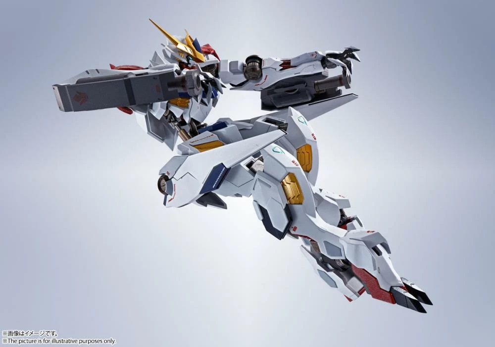 Barbatos Lupus joins the Metal Robot Spirits line. This Gundam comes packed with a variety of weapons and accessories including interchangeable wrist parts, oversized Valkyrie Sword, Twin Mace, and many more are so you can reproduce powerful actions scenes!