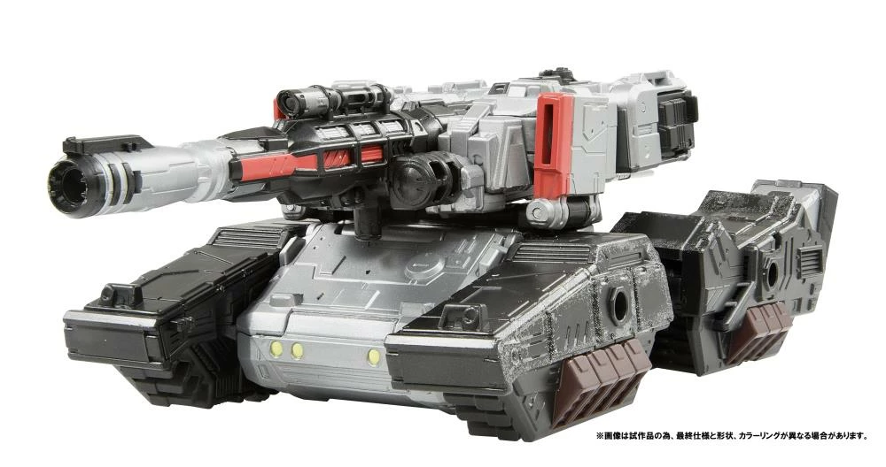 Megatron features a blaster and sword weapon, and when converted, it transforms into a tank of about 23 cm in length.
